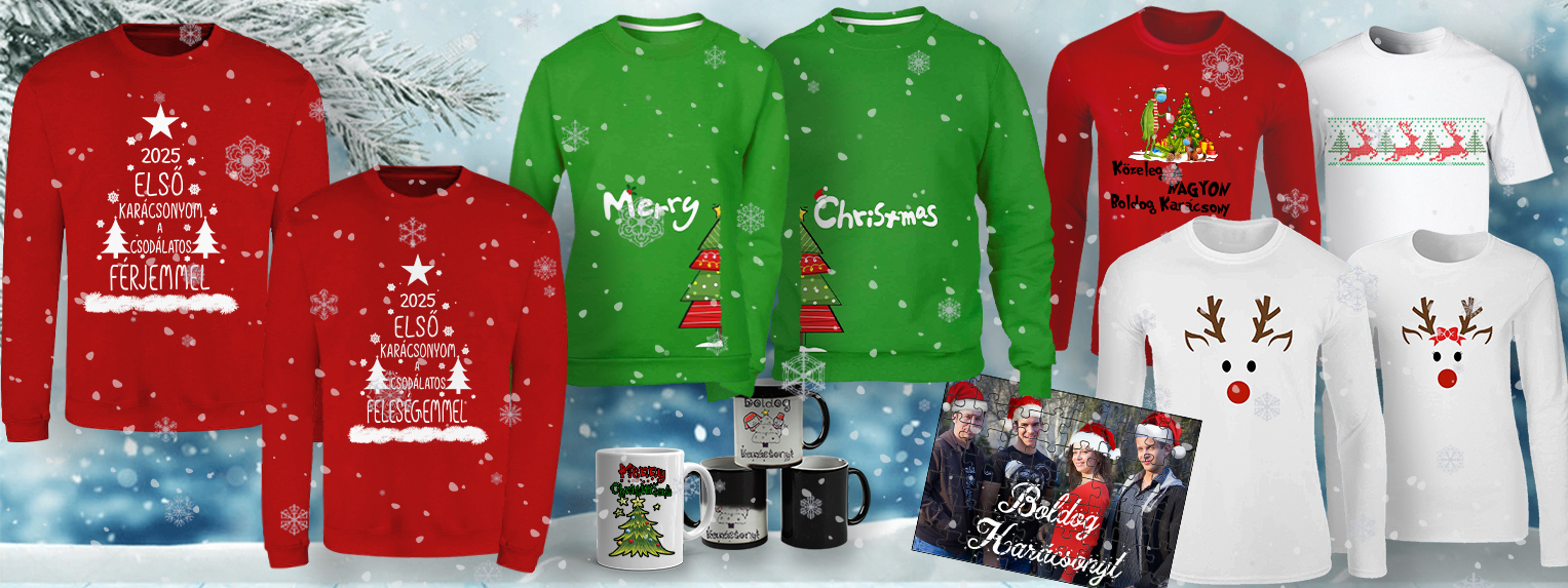 Karácsonyi mintás pólók – pulóverek az ünnepi hangulatra.